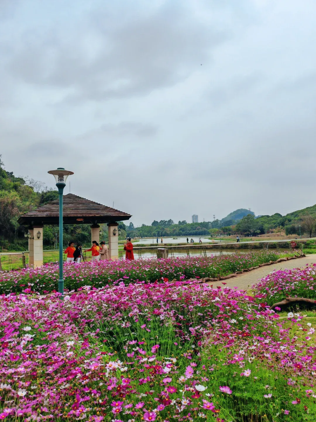 ✨推荐理由:作为深圳唯一省级森林公园,这里不仅有盛放的格桑花海,还有月亮湖、大草坪、郊野径。你可以在这里散步吸氧,还能打卡超多大湾鸡雕像。下午14点左右公园人少,是游玩的好时机。