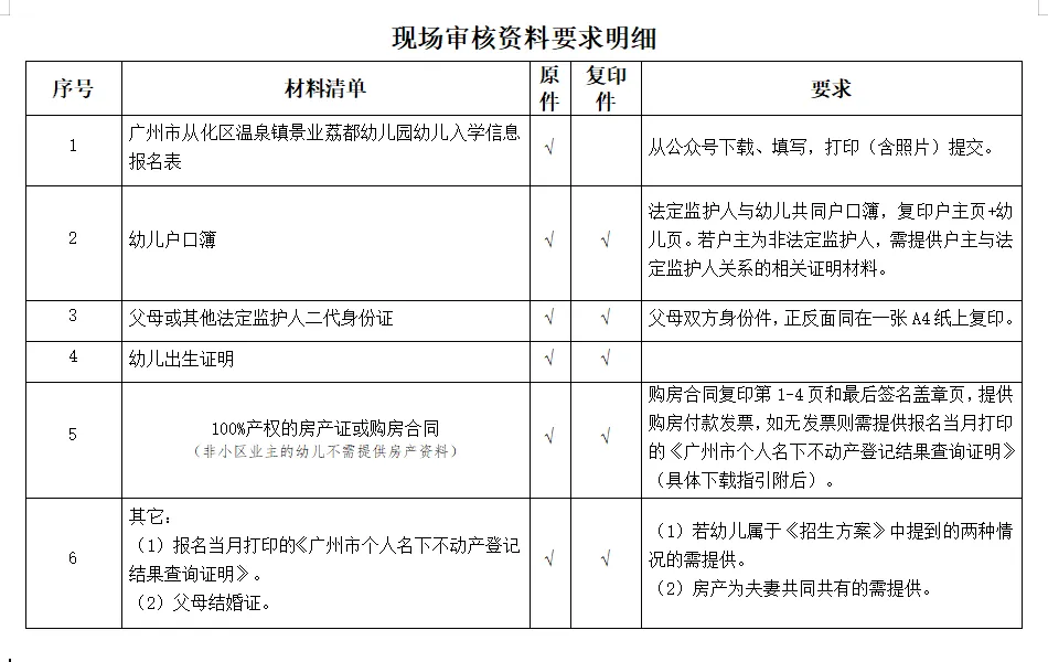 2.交资料请前往景业荔都幼儿园门卫室(即:从化区温泉镇景业荔都二街69号)进行资料审核。