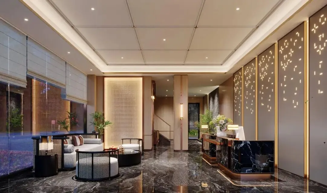 酒店大堂以雅致暖调为主,