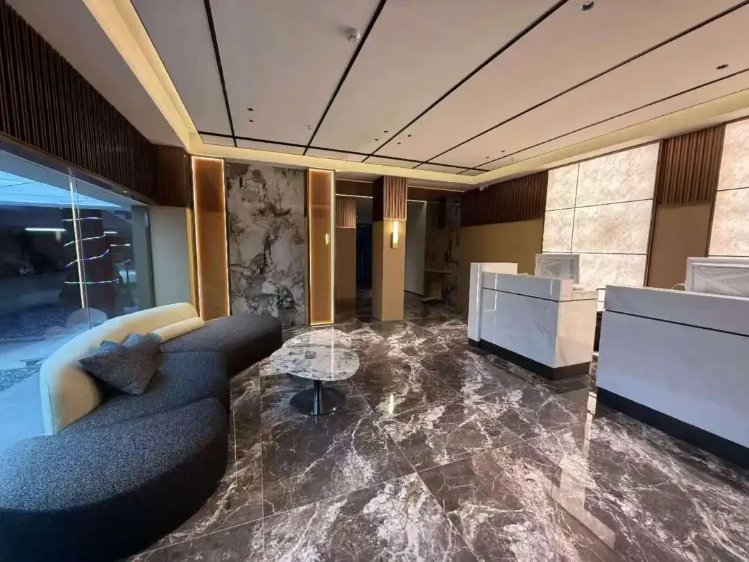 休息区与前台布局通透,尽显轻奢格调。