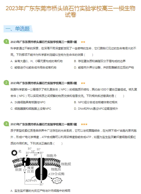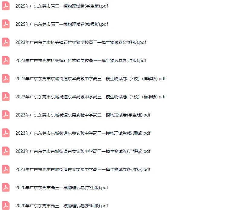 2018-2025学年东莞各区高三一模物生真题及答案解析