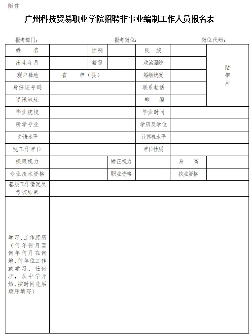 附件:广州科技贸易职业学院招聘非事业编制工作人员报名表