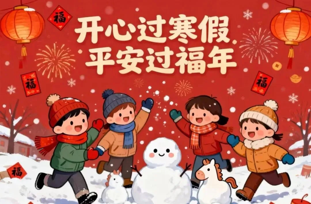 您好!伴随着孩子们的欢声笑语,本学期的学习生活即将圆满落幕,寒假也如期而至。在此,广州市增城区沙埔耀阳全体教职工向您致以最诚挚的感谢,衷心感谢您一直以来对幼儿园工作的鼎力支持与密切配合。为让孩子们度过一个安全、快乐、充实的寒假,现将假期相关事项告知如下: