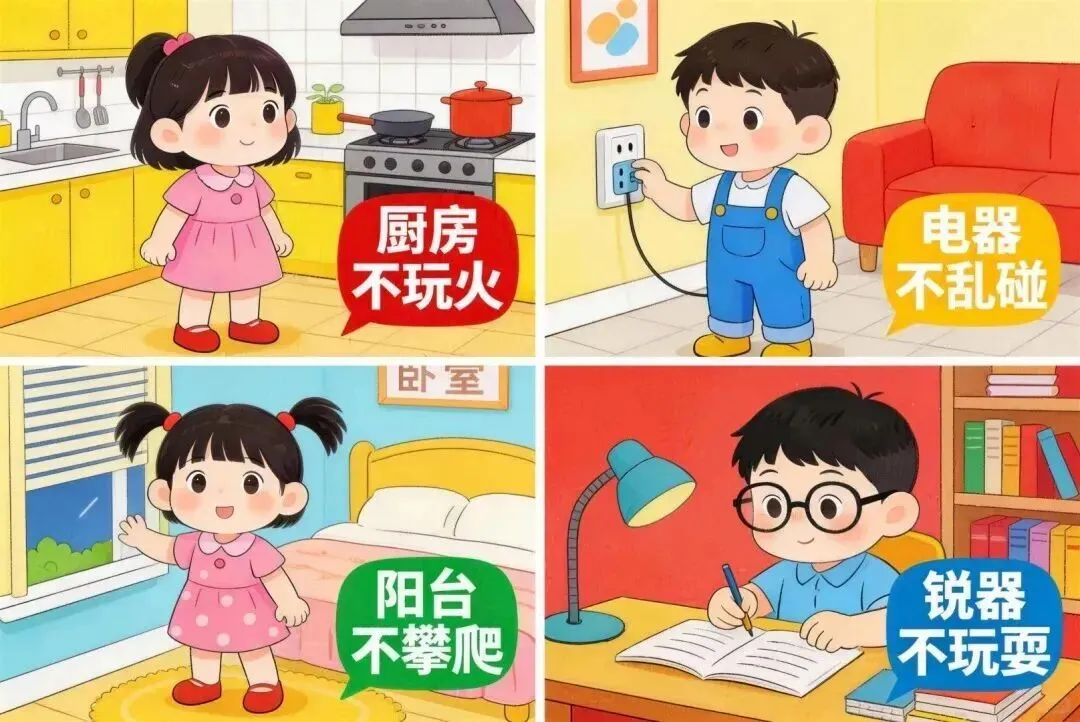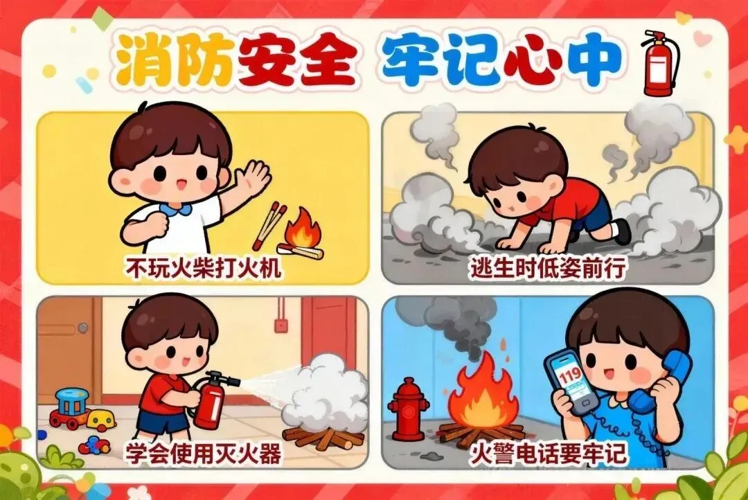 教育孩子远离易燃易爆物品,不能玩火,安全正确使用电器,家中无人时应切断电源,关闭燃气阀门。学会正确的火灾逃生、报警及灭火知识。小朋友不要参与火灾扑救,火灾逃生不要乘坐电梯。