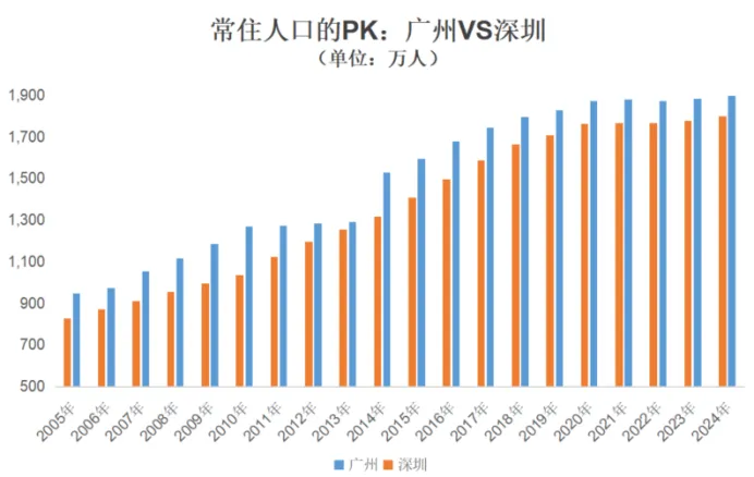 2024年末广州和深圳的常住人口分别为1897.80万人和1798.95万人。