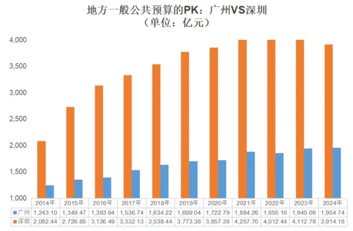 从2015年以来的数据看,深圳地方一般公共预算收入一直是广州的2倍以上。