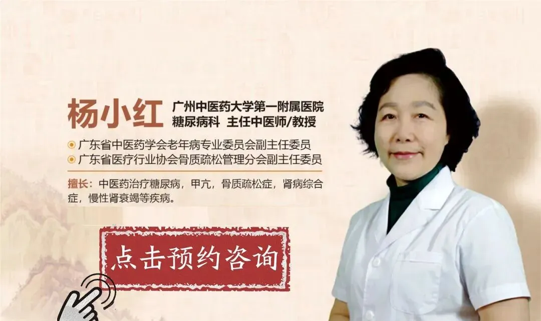 首先简单了解下杨小红医生,她是广州中医药大学教授、主任中医师,现定期在广州中医药大学第一附属医院及宏韵中医馆坐诊,擅长中医药治疗糖尿病及并发症、甲状腺疾病等,在中西医结合调理糖代谢紊乱方面有着深厚造诣和丰富临床经验,尤其擅长根据患者体质辨证开方,兼顾控制血糖与预防并发症,深受患者信赖。