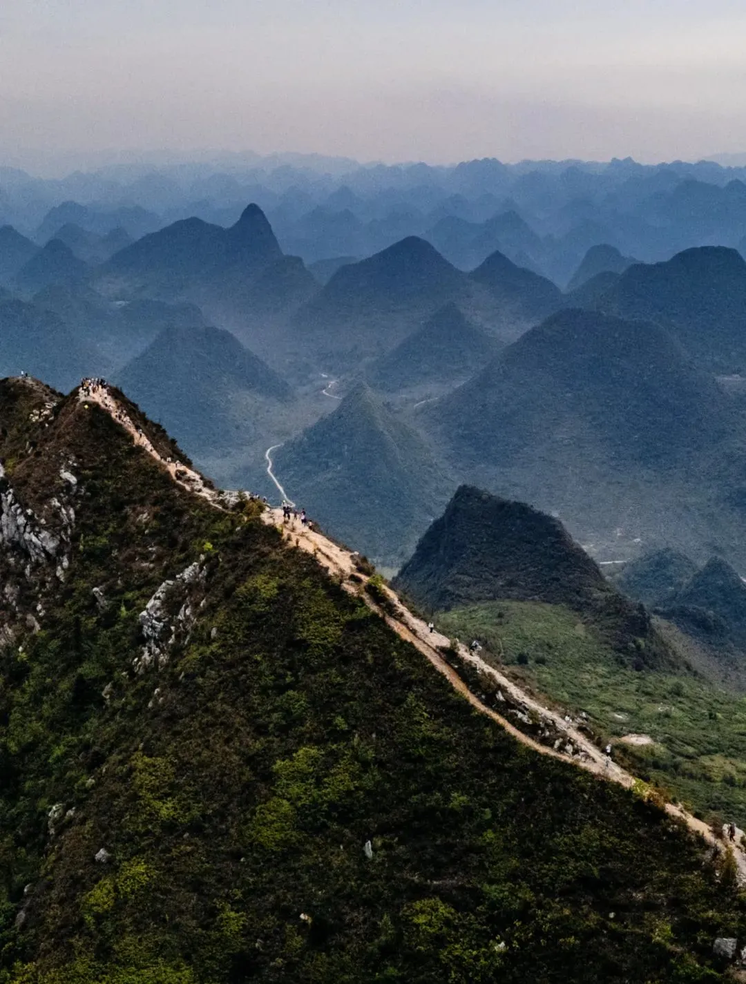 14:40 到达莫六山顶,一览众山小,观看喀斯特地貌,及英西群峰众岭。