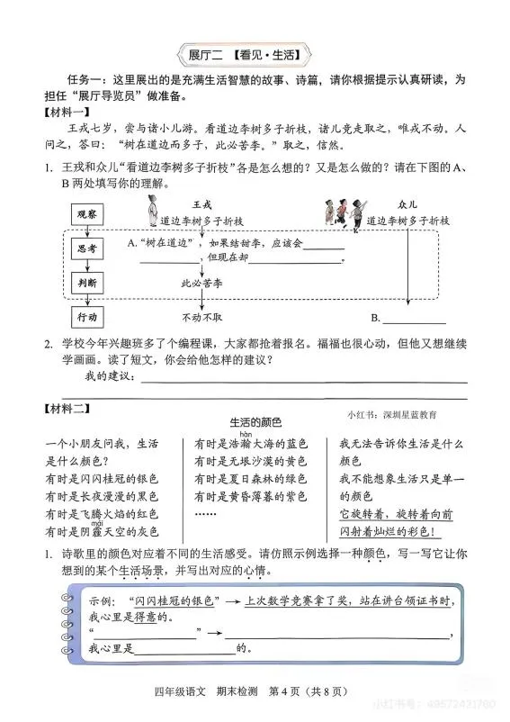这个时代,我不得不感谢小红书这样的社交媒体,让我足不出户,也不用寻求熟悉的朋友帮助,就可以迅捷看到深圳各个区的期末试卷。各种自媒体迅速将不同区、不同学科的期末考试试卷上传到网络,不管是什么样的目的,都可以让我们有机会横向比对不同的试卷,从中看到深圳小学语文考评的方向。