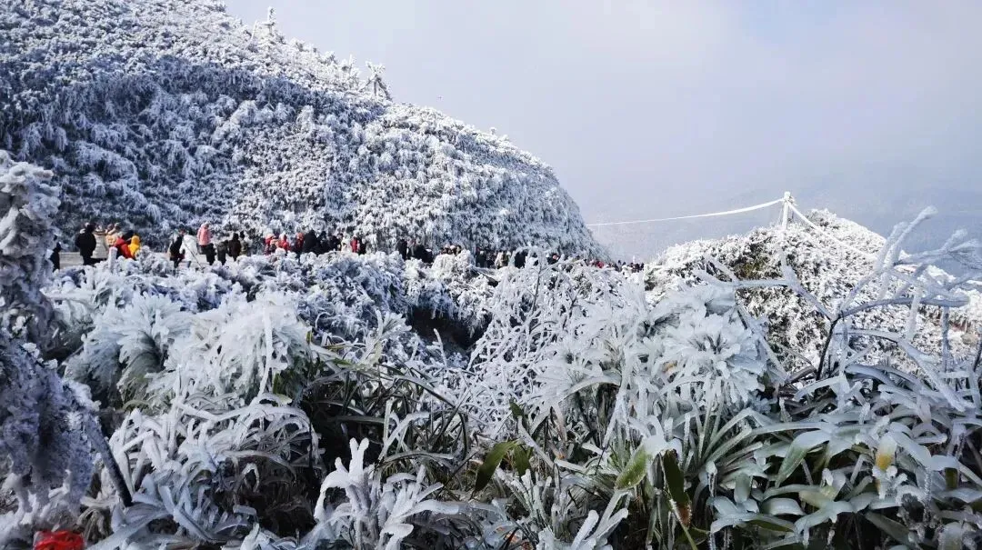 09:00 左右到达云冰山风景区,乘景区环保车前往南国雪乡之称的【云冰山景区】于湘粤交界的云冰山,以云海,冰雪奇观而得名,一览众山小的梦幻云海,奇特冰挂堪称一绝;每年的"雾凇 雪淞 雪景"奇观轮番上阵,素有南方"北国风光"的美誉(另外说明:如遇道路结冰等恶劣天气 ,景区为安全起见,云冰山中转车可能暂停且费用没的退,徒步上顶约3公里40分钟左右);