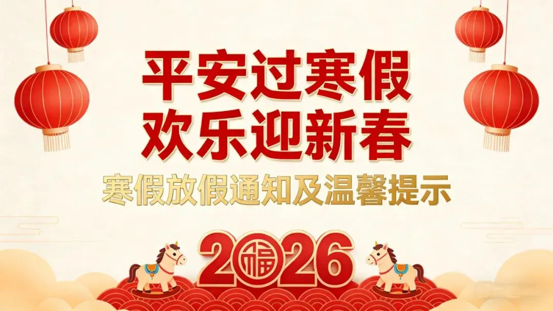在过去的一学期里,我们家校携手,凝心聚力,共同培育孩子们健康、快乐成长,东莞市翰林高级中学全体教职工向您和您的家人致以最诚挚的问候和祝福。根据东莞市教育局公布的中小学校历安排,结合我校实际情况,现将我校2026年寒假放假安排通知如下: