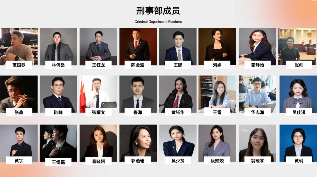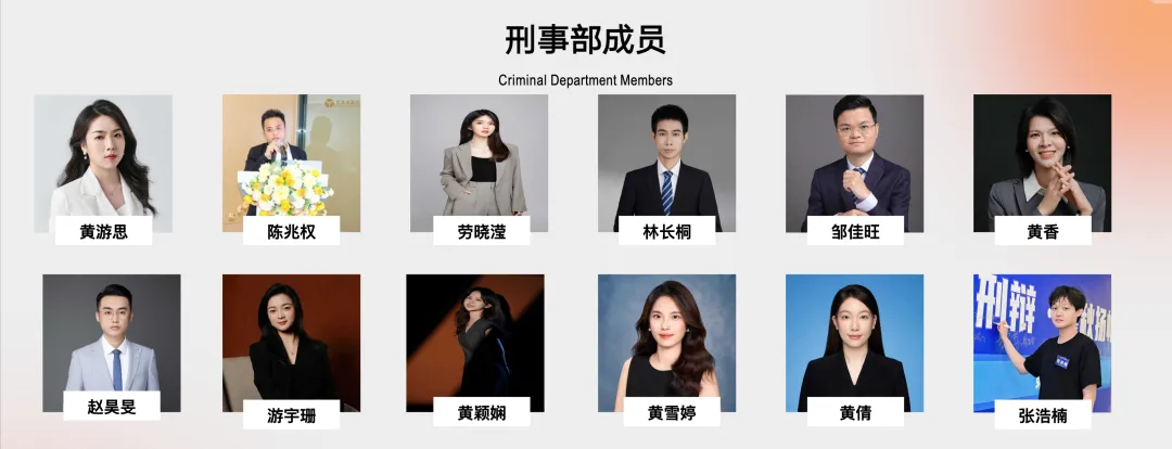 近年来,部门持续吸纳优秀人才。2025年,邹佳旺、王煜磊、段姣姣、鲁海、黄雪婷、黄玥加入团队。2026年,林长桐、劳晓滢、黄游思、赵昊旻亦正式成为刑事部一员。