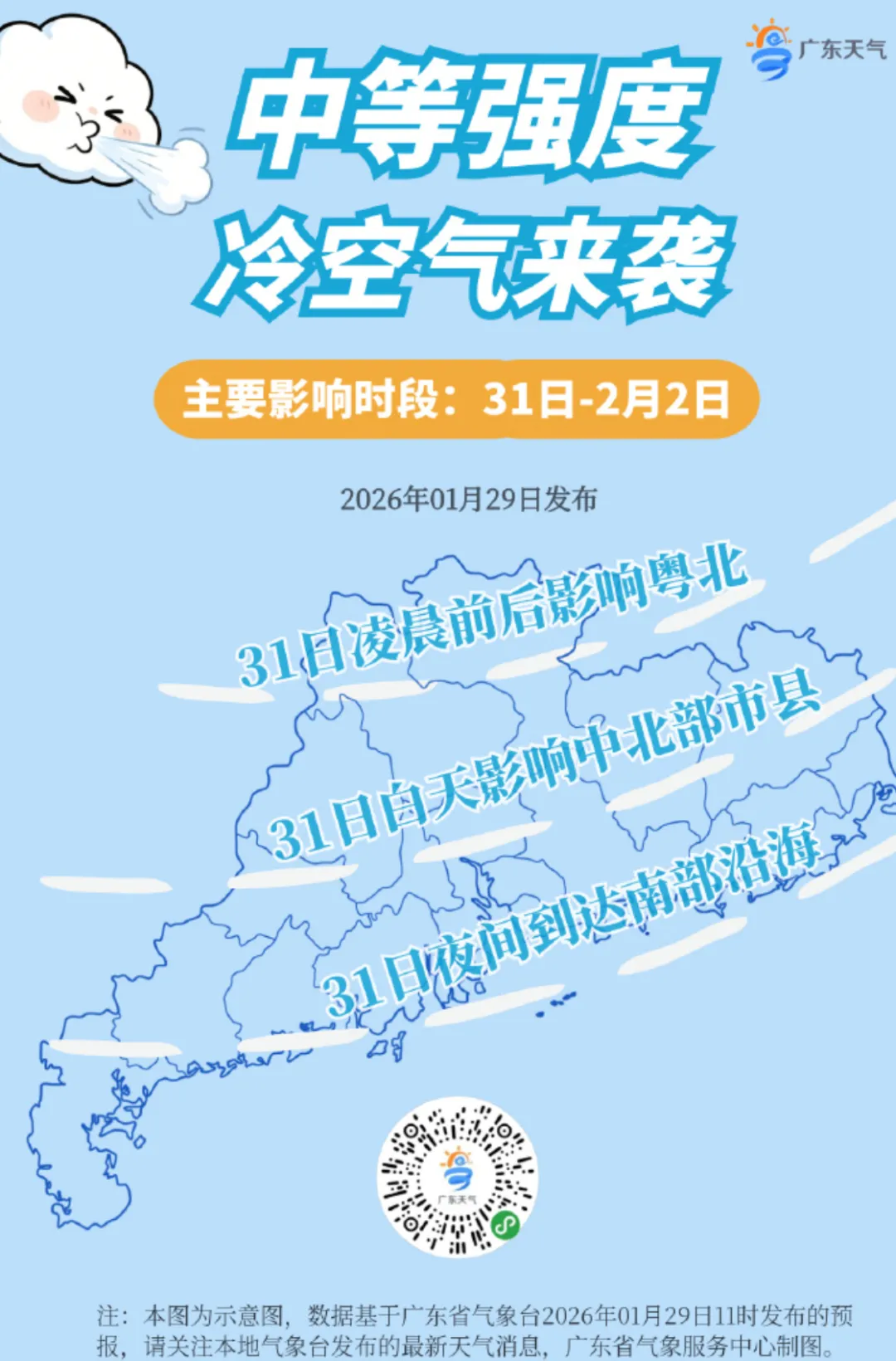 30日我市云量增多,有小雨或轻雾;31日零星小雨转阴天间多云;2月1—2日受冷空气影响,多云间晴,气温下降。