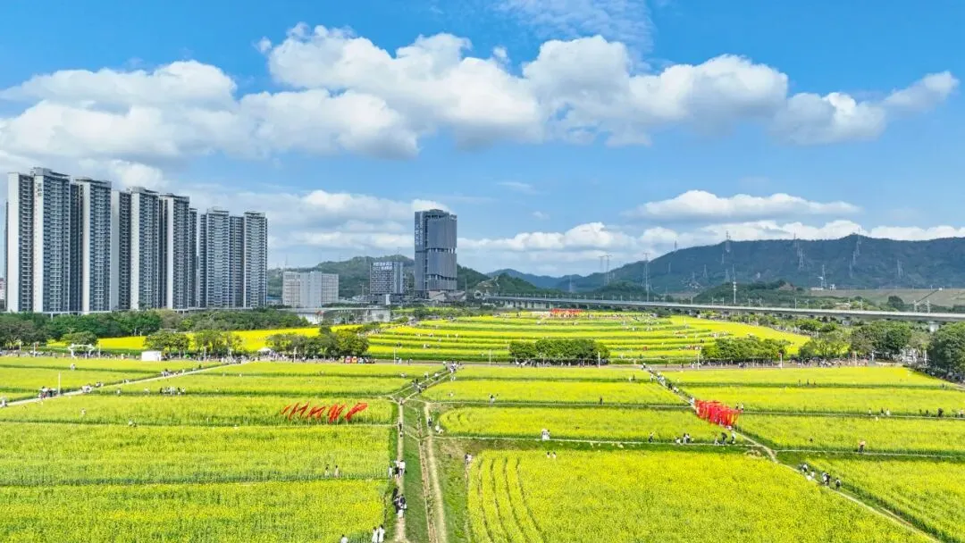 在深圳光明区,有一片“长”在城市中心的田园:春看油菜花海,夏赏金葵凤荷,秋有风吹稻浪,冬享果园飘香。这是深圳市区内为数不多保留的大规模基本农田。