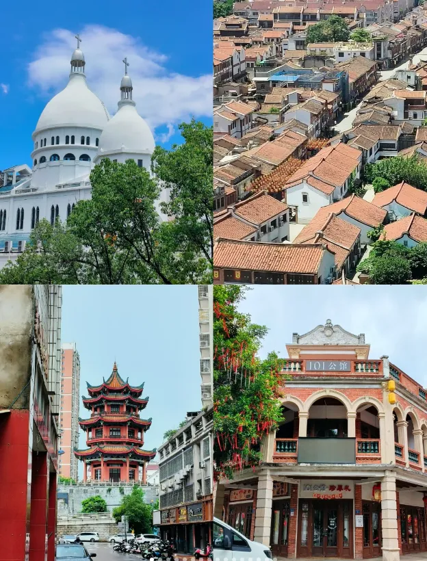 【天主教堂】:天主教堂是鼓浪屿上最美的一座教堂,也是厦门地区仅存的一座哥特式的教堂,鼓浪屿网红打卡地。天主教是由西班牙的建筑师设计而成,前面部分是钟楼,一共为三层,一层为入口,二层为歌经楼,三层为钟塔。