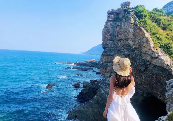 前往鹿嘴山庄电影《美人鱼》拍摄地,赏无敌醉美海景。有点北欧风的绝美悬崖美景,陡峭的悬崖加上激流的海浪,随手一拍都是海岛大片。这里是网红打卡点,也是婚纱摄影的天堂。“人鱼洞”在高高的悬崖下面,与大海相连,美人鱼就是从这里出没的。