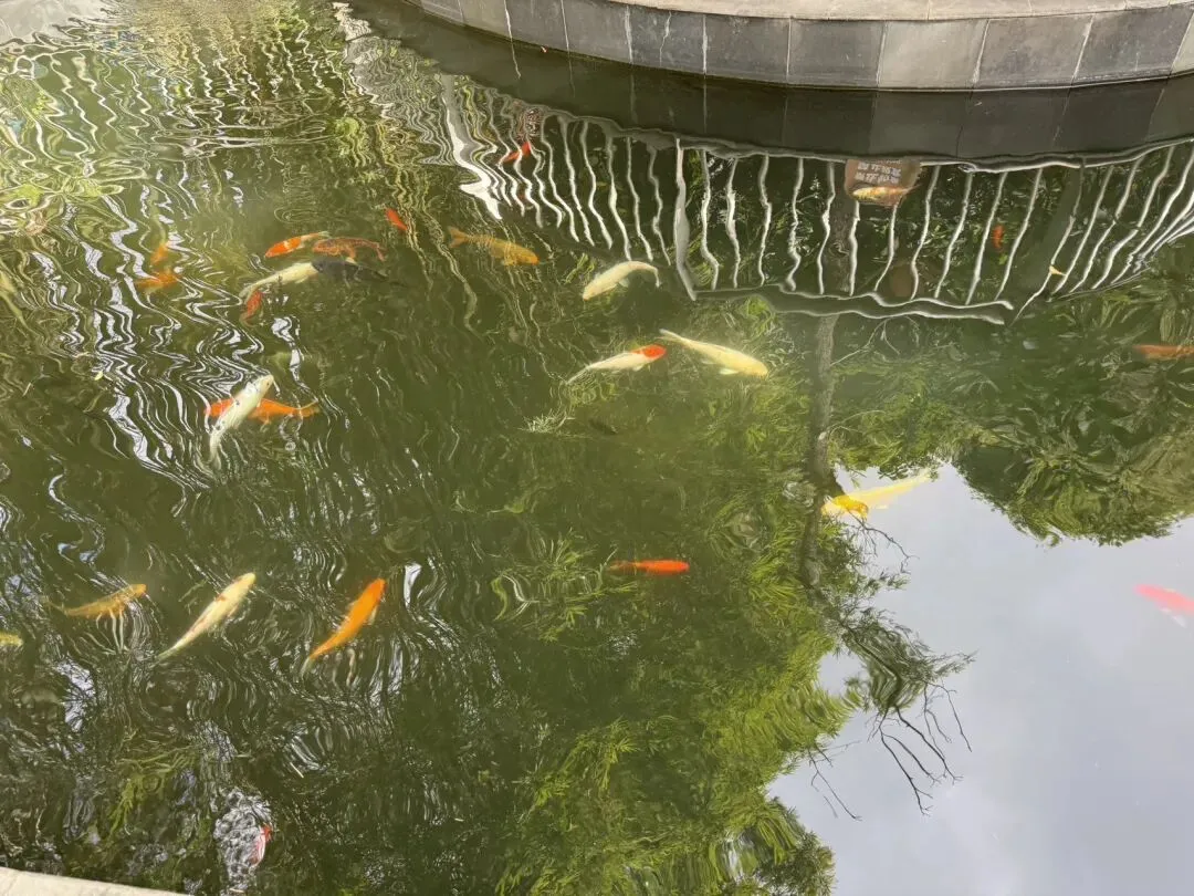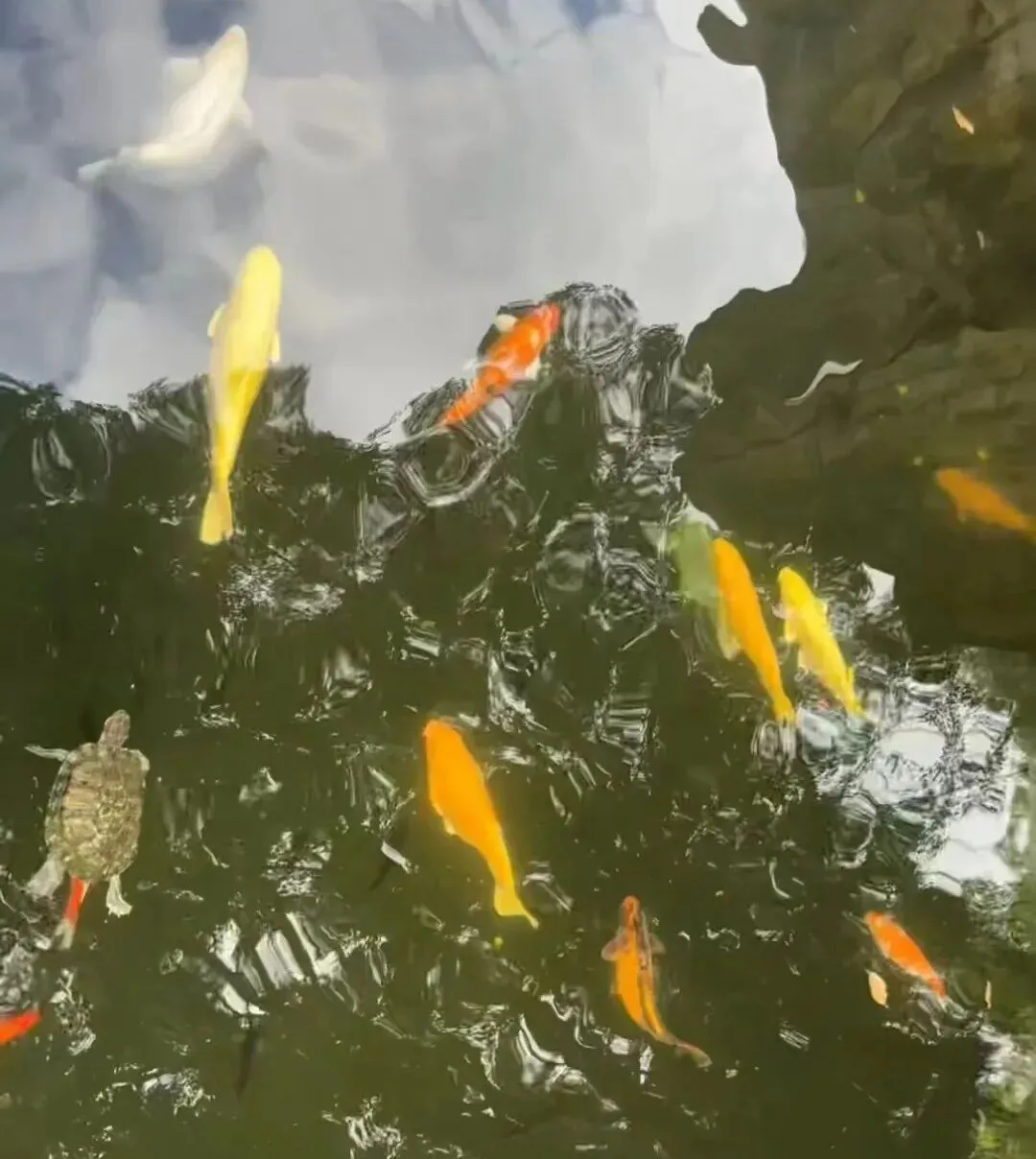 最后还去了锦鲤园,吸好运!多个池子养满金红锦鲤,阳光底下像发光一样,还能偶遇可爱小乌龟~娃围着看半天超专注,拍照也巨出片!