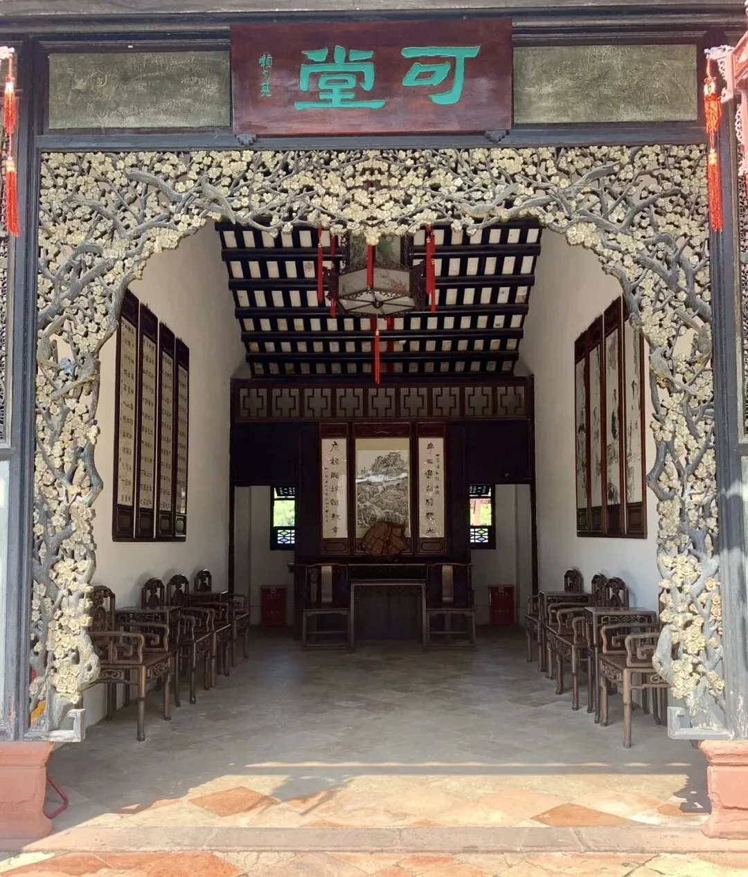 请大家看大门两侧的这副对联:“未荒黄菊径,权作赤松乡。”这十个字,是理解张敬修晚年心境和可园精神内涵的钥匙。它巧妙化用了两个典故:陶渊明“采菊东篱下”的田园隐逸,和张良功成身退后追随仙人“赤松子”云游的逍遥。对联意思是:我并未真正荒废那归隐的田园(黄菊径),如今暂且把这里(可园)当作追随赤松子仙游的故乡吧。这明确宣告了园主人从功名利禄的“庙堂”向恬淡自然的“江湖”的转身,为我们今天的游览定下了“隐逸、超脱、雅致”的基调。