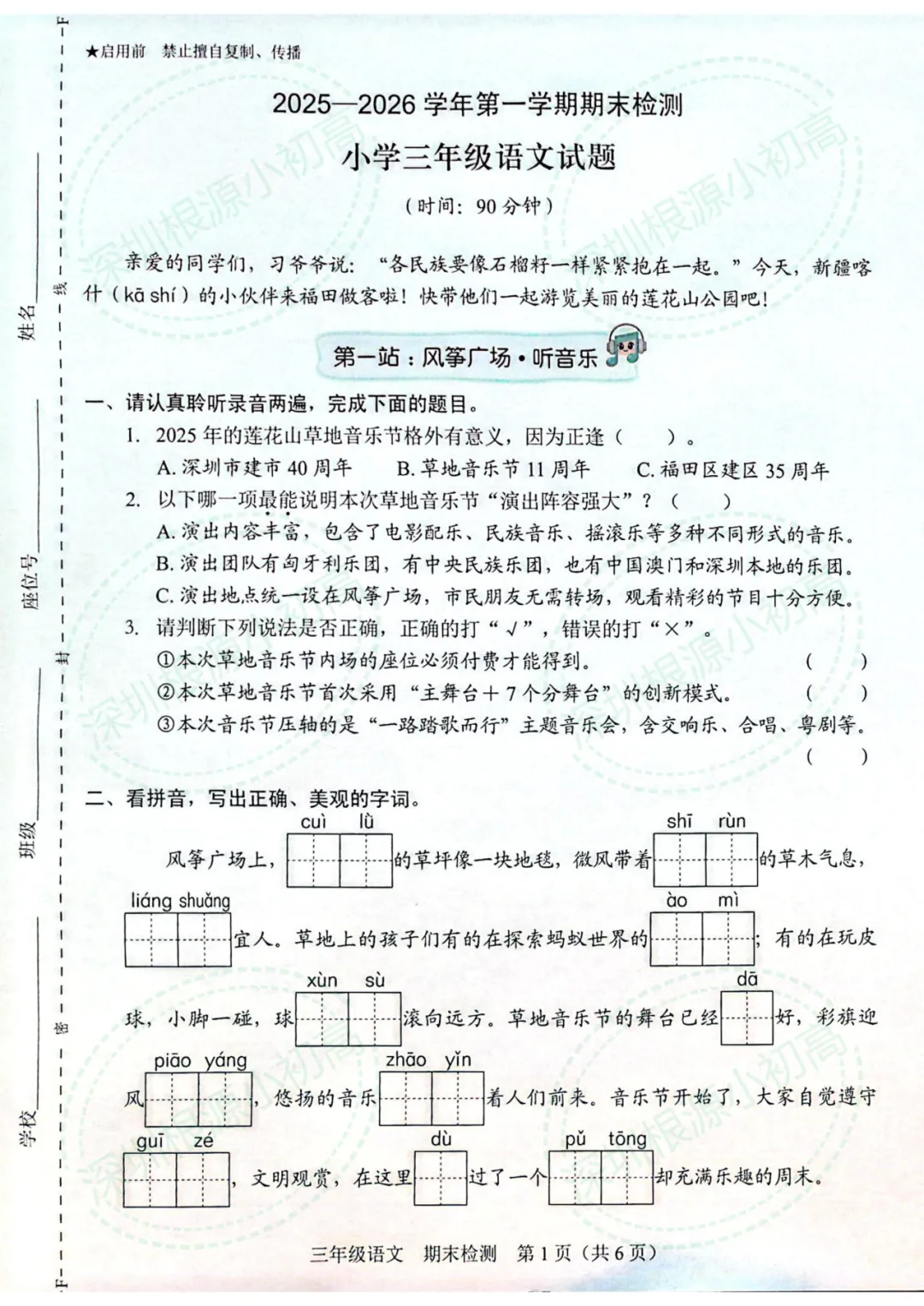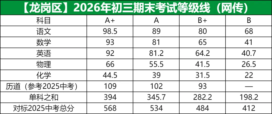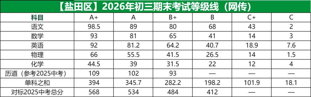 速递!2026深圳中小学期末等级线已出!附:真题+解析!