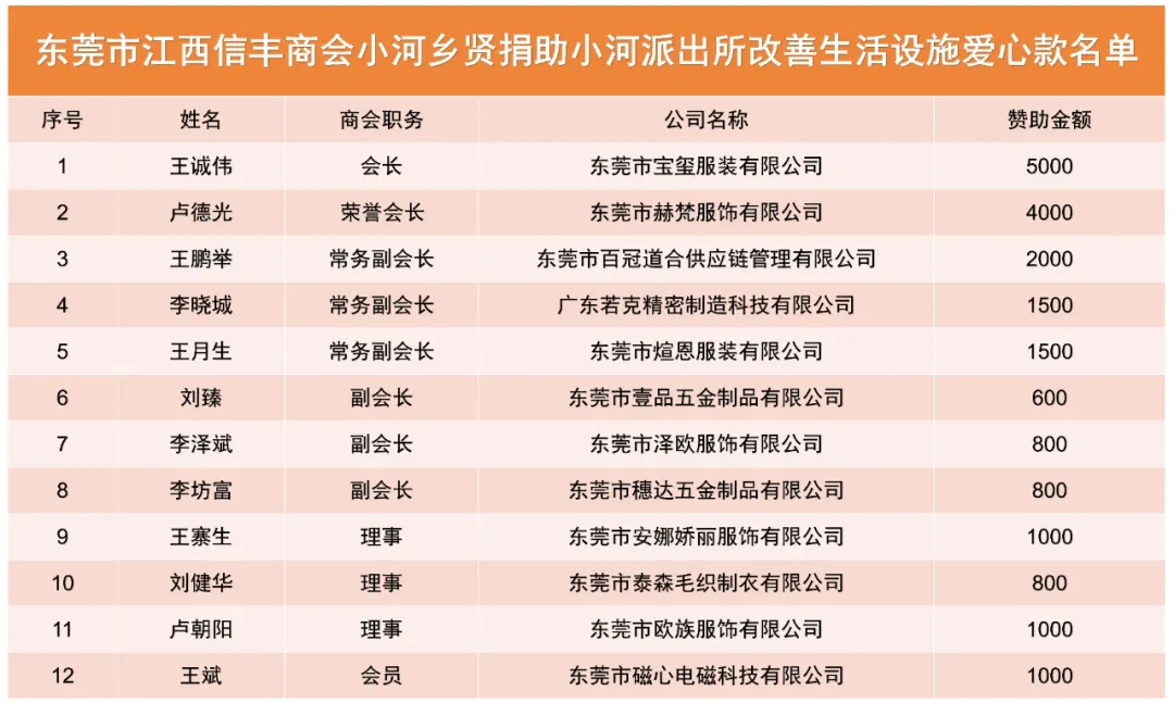 东莞市江西信丰商会乡贤捐赠小河镇派出所改善生活爱心活动