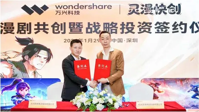 1月29日,深圳AI漫剧赛道迎来里程碑事件,上市公司万兴科技正式入局AI漫剧赛道——千万级战略投资灵漫快创,同步推出AI漫剧一站式工具“万兴剧厂”限量公测,抢占行业风口。截至1月30号,万兴科技(SZ:300624)总市值为180亿。1月29日,灵漫快创与万兴科技双方在深圳举办“AI漫剧共创暨战略投资签约仪式”,双方高层均出席仪式。此次活动标志着万兴科技正式布局AI漫剧赛道。灵漫快创创始人赵伟均现场表示:“AI漫剧已步入共创时代。万兴科技旗下万兴剧厂等产品已深度赋能灵漫多部爆款作品,实现5倍以上提效。灵漫将基于真实创作场景反向推动产品迭代,形成‘技术赋能内容-场景反哺技术’的产业闭环。”