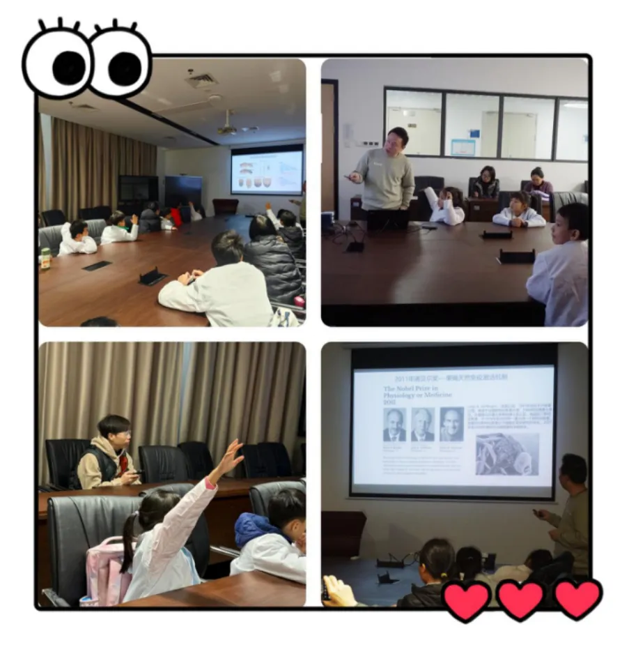 一开始,有的小朋友还以为实验室里的果蝇就是常见的“绿头苍蝇”!通过讲解,大家才发现,显微镜下那些红眼睛、灰身体的小家伙,居然这么可爱!课堂上,小朋友睁大好奇的眼睛,争先恐后地提出各自心中的疑问,课堂秒变 “十万个为什么”现场:“果蝇的眼睛为什么和人的眼睛不一样?”“为什么有的眼睛是红色有的是白色?”“果蝇会冬眠吗?”......大家的问题科学而充满童趣,刘老师一一耐心解答。果蝇小课堂