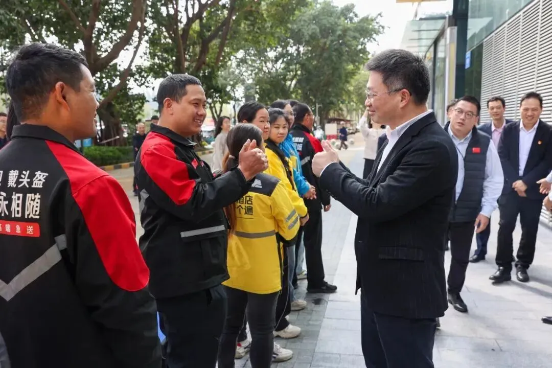 1月29日,市“小个专”和网约配送行业党委书记、市市场监管局党组书记、局长蔡英权率队前往南山区高新区社区党群服务中心,开展“深爱骑·圳暖新”新春慰问活动,为奔波一线的骑手们送上节日的祝福与关怀。