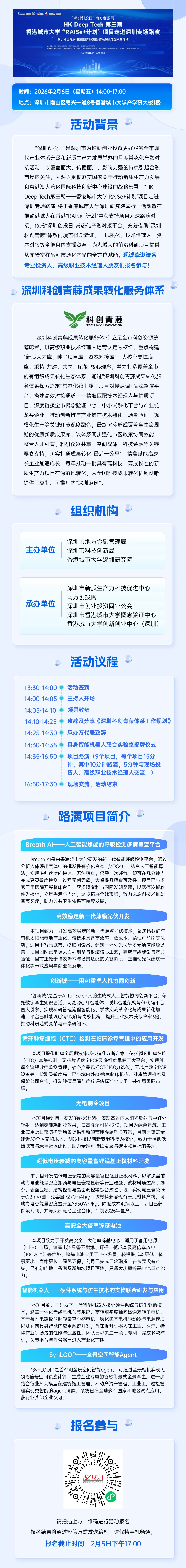>活动邀请 | “深圳创投日”南方创投网 HK Deep Tech第三期——香港城市大学“RAISe+计划”项目走进专场路演即将举办!