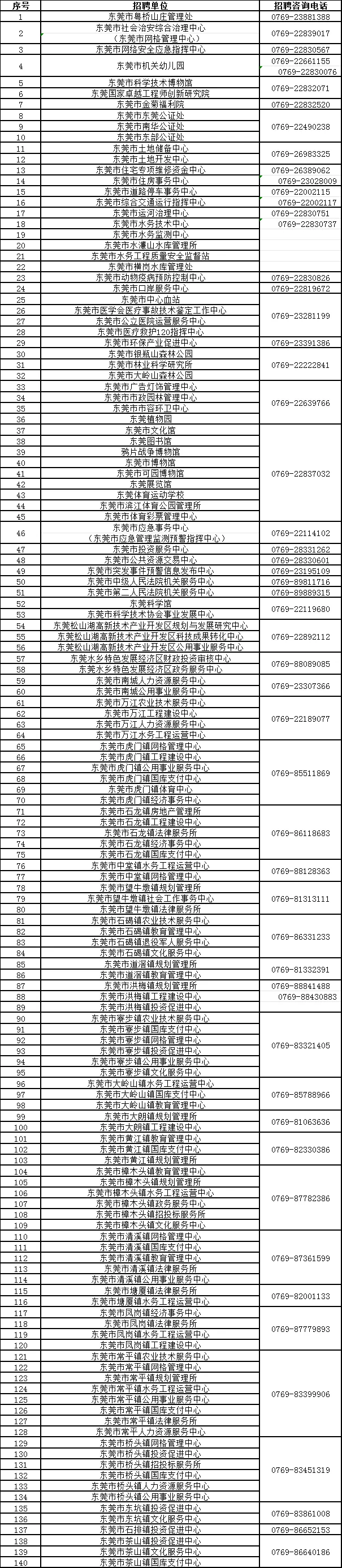 广东省事业单位2026年集中公开招聘高校毕业生东莞考区招聘单位咨询电话公告