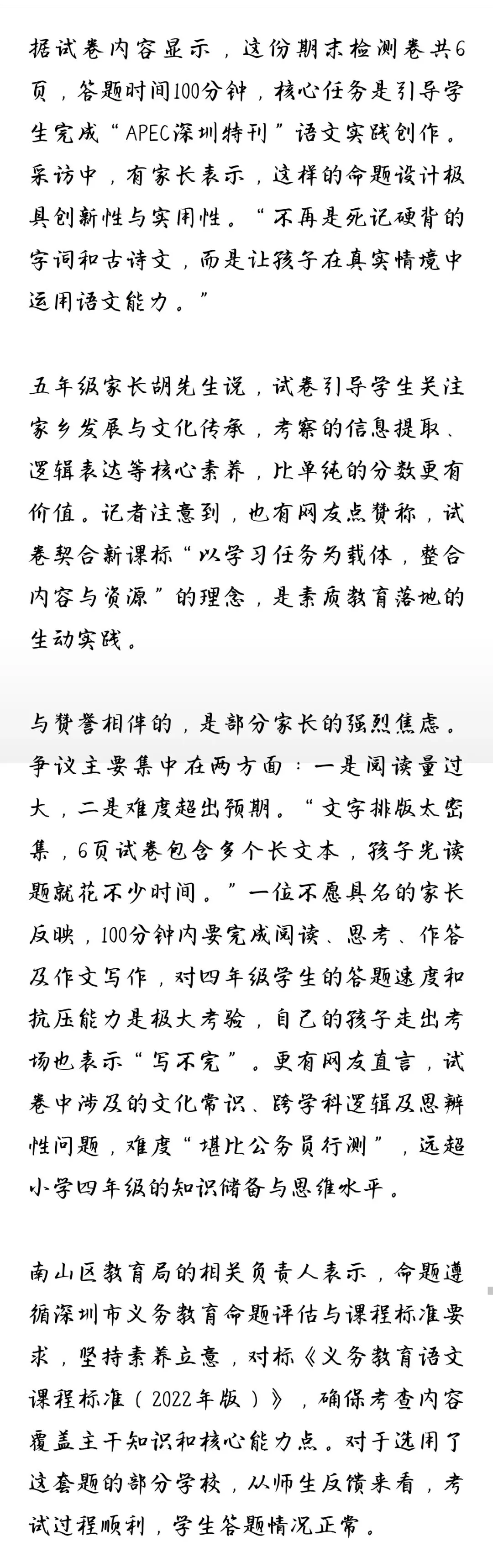 据说去年南山四年级数学期末试卷出圈,全国闻名。