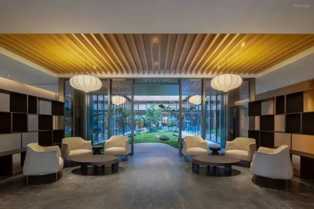 步入酒店,木莲庄标志性的精奢格调扑面而来
