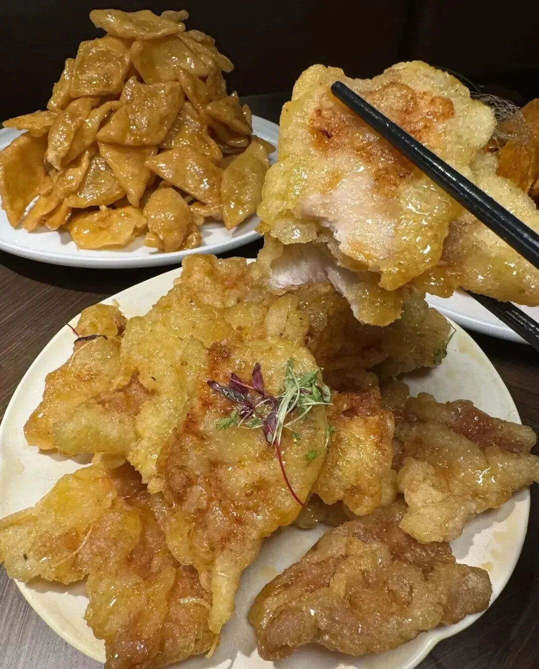 外面那层酥皮是真的脆 , 咬下去咔嚓一声 , 里面的肉还是嫩的 , 酸甜汁调得刚刚好 , 不会齁甜也不会太酸 , 一大块一大块的吃起来特别过瘾 , 我一个人能干掉半盘。