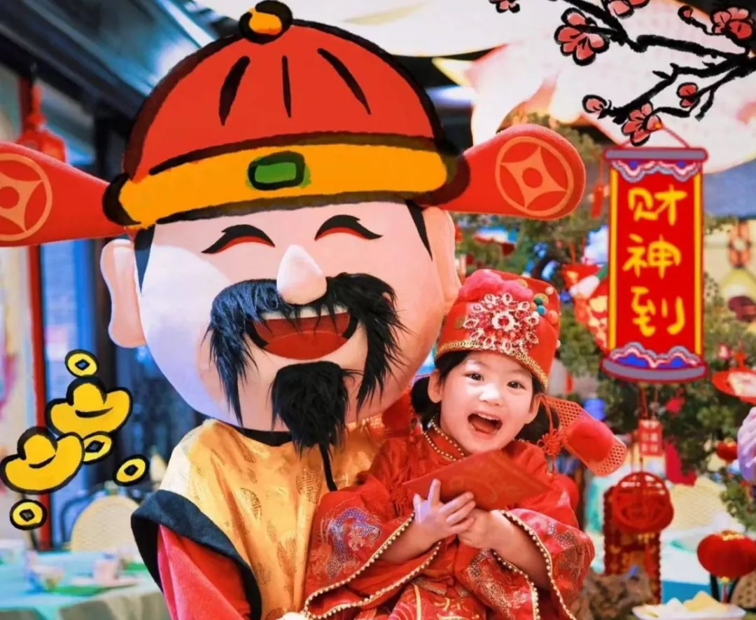 穿马年喜庆服饰,举着“马到成功”“财源广进”牌子,偶遇即有福利!