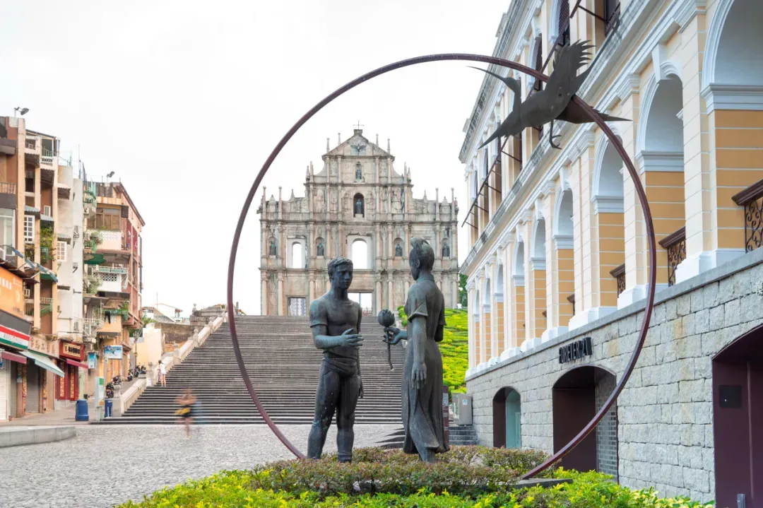 游览具有标志性地标建筑的圣保罗教堂遗迹,列入世界遗产的中西合璧的石壁在全世界的是独一无二的天主教教 堂大三巴牌坊