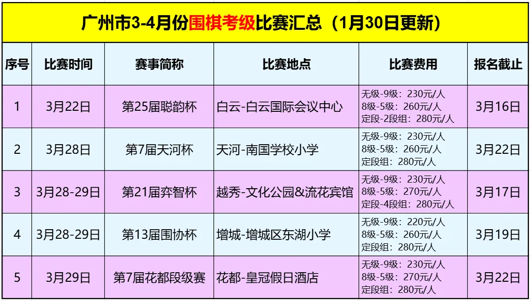 广州市3-4月围棋考级比赛汇总(1月30日更新)