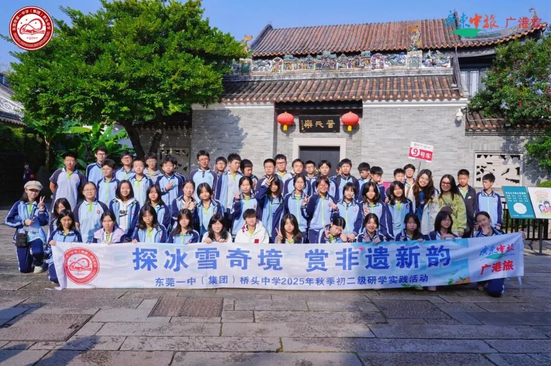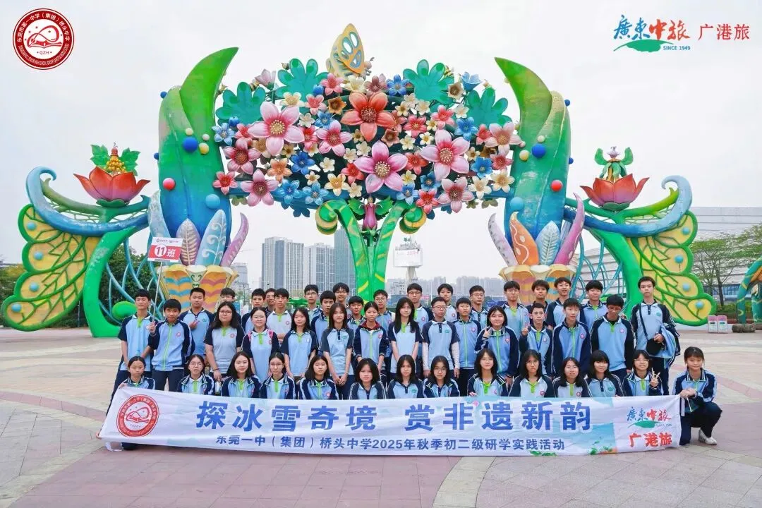 2025年12月24日,东莞市第一中学 (集团) 桥头中学初二级学子怀揣对新奇体验的期待与对传统文化的向往,踏上了 “探冰雪奇境 赏非遗新韵” 主题研学之旅。穿梭于广州的老城街巷与欢乐场馆,在非遗古坊中触摸文化根脉,在冰雪世界中释放青春活力,在大马戏的震撼中感受艺术魅力,让成长在冬日的羊城绽放别样光彩。