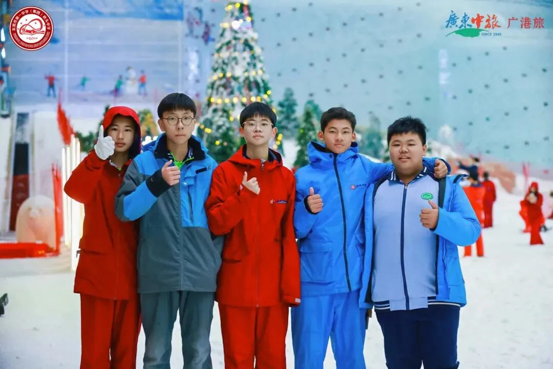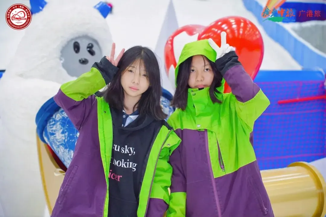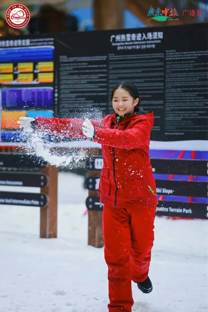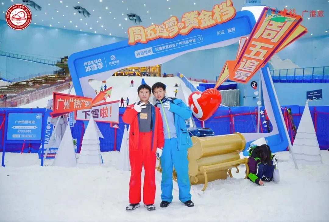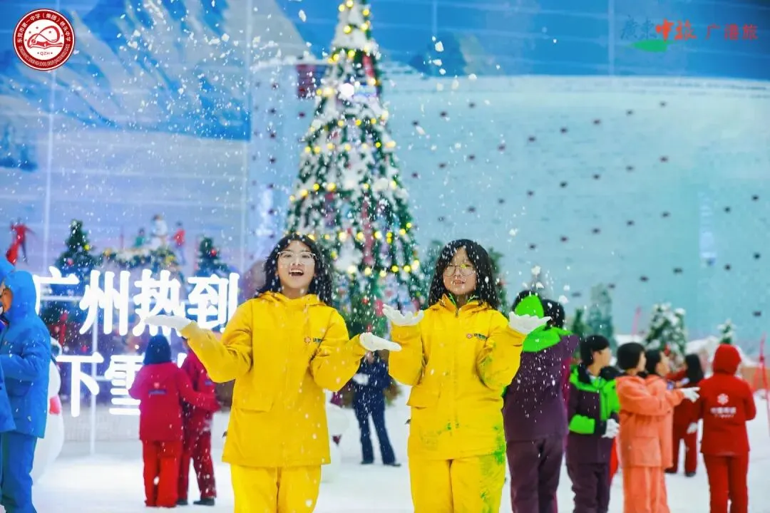 告别老城的烟火,学子们走进广州热雪奇迹,瞬间闯入银装素裹的冰雪世界。