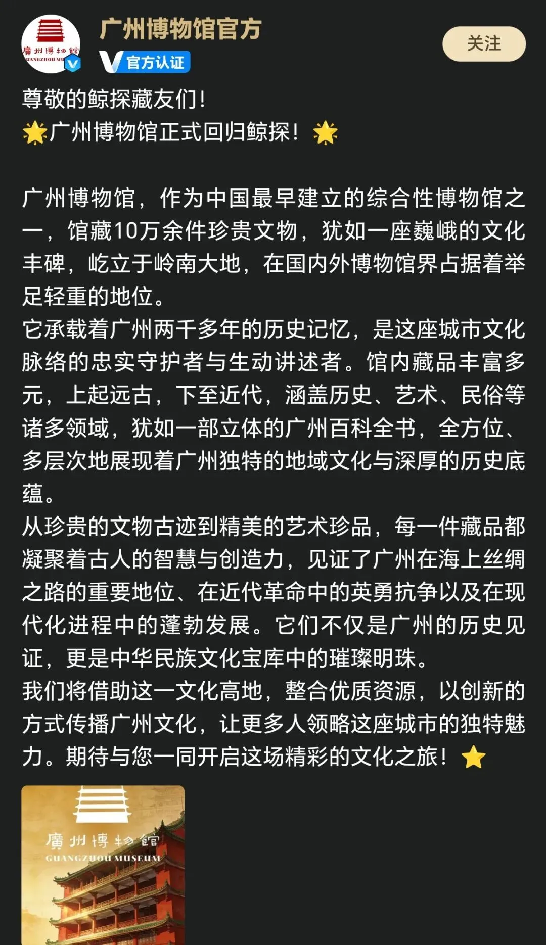 近日,小编留意到广州博物馆时隔两年后再次宣布回归鲸探。