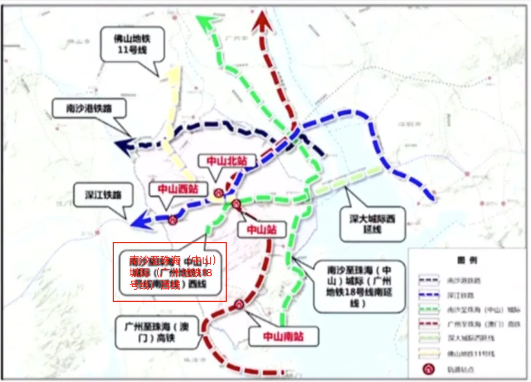 至于江门已初步谋划的深中江城际项目,这里还需要提到深南中城际。