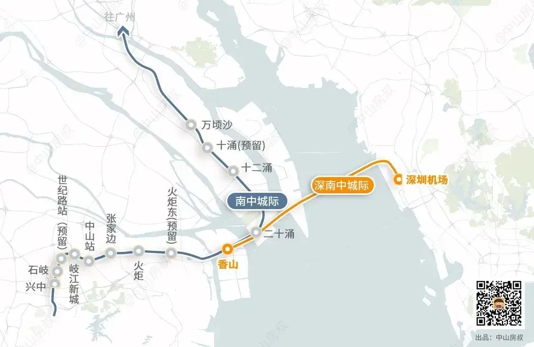 其中,为了加强珠江口东西两岸的互联互通水平,已初步谋划深中江城际项目,可在中山站衔接南珠(中)城际,从而串联广洲南沙、中山翠亨新区、主城区、古镇及江门棠下。