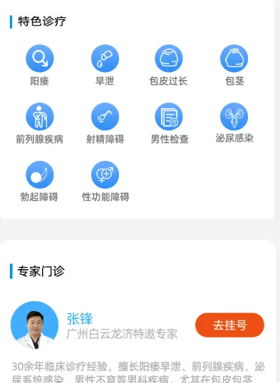 点击底部导航栏“预约挂号”或“在线咨询”进入挂号页面。