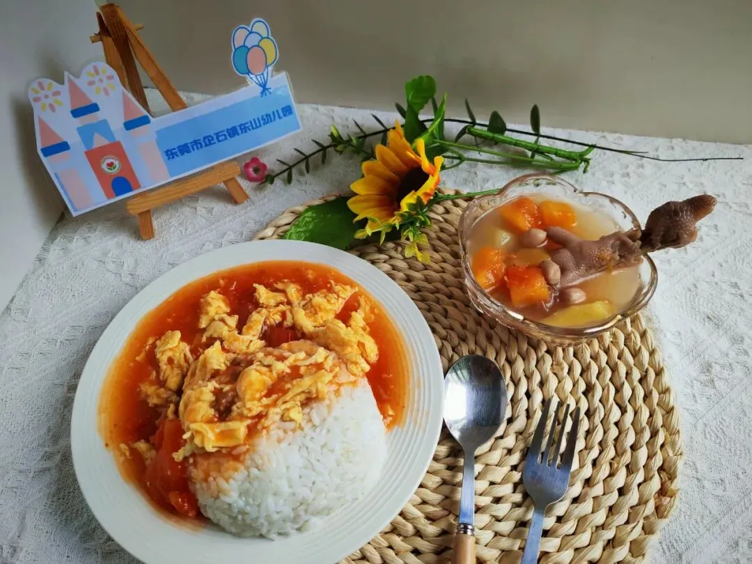 肉沫番茄鸡蛋盖饭(过敏替代:肉沫番茄盖饭)、木瓜花生鸡脚汤