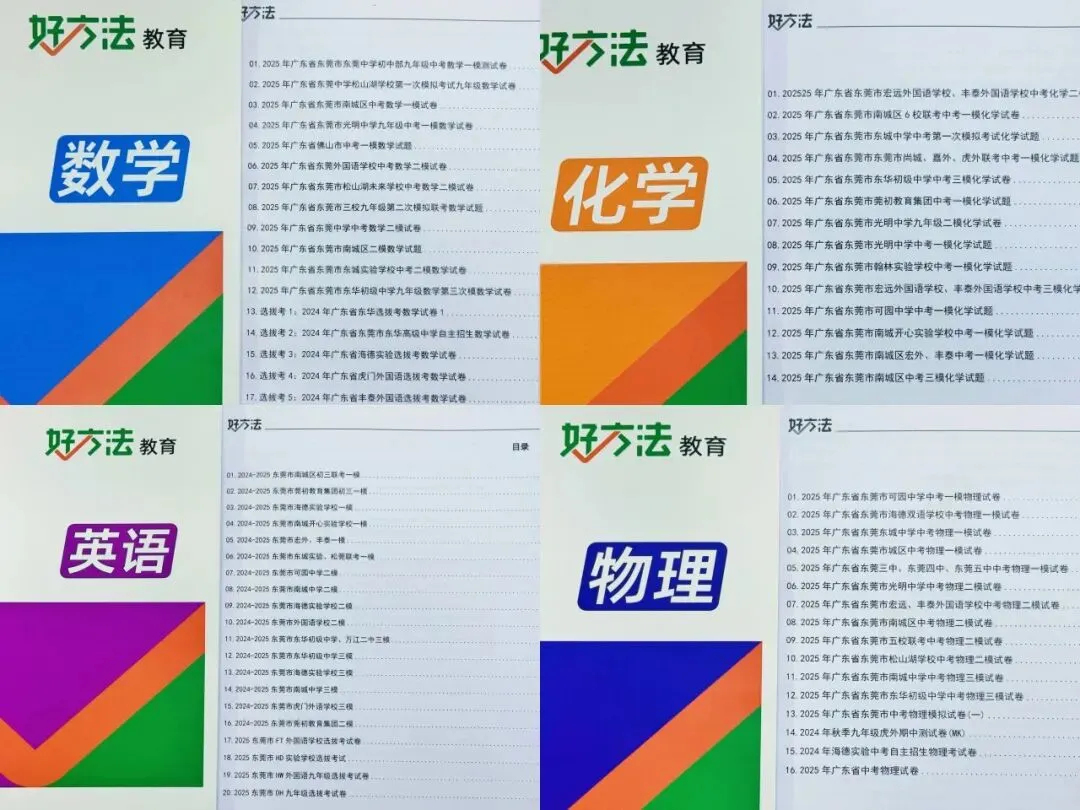 题型从基础到压轴层层递进,既能巩固基础,又能锻炼解题技巧,帮孩子快速摸清这四科薄弱环节,针对性补强,精准对接东莞中考重点。