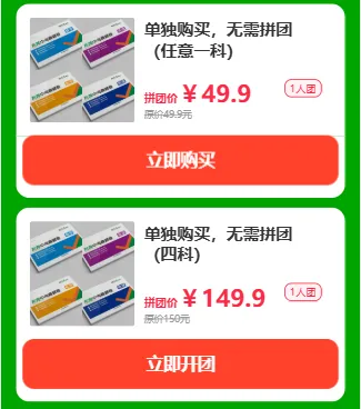 如果不想拼团、想快速入手,也可选择单独购买,1科49.9元,一整套4科仅需149.9元(相当于买3送1)