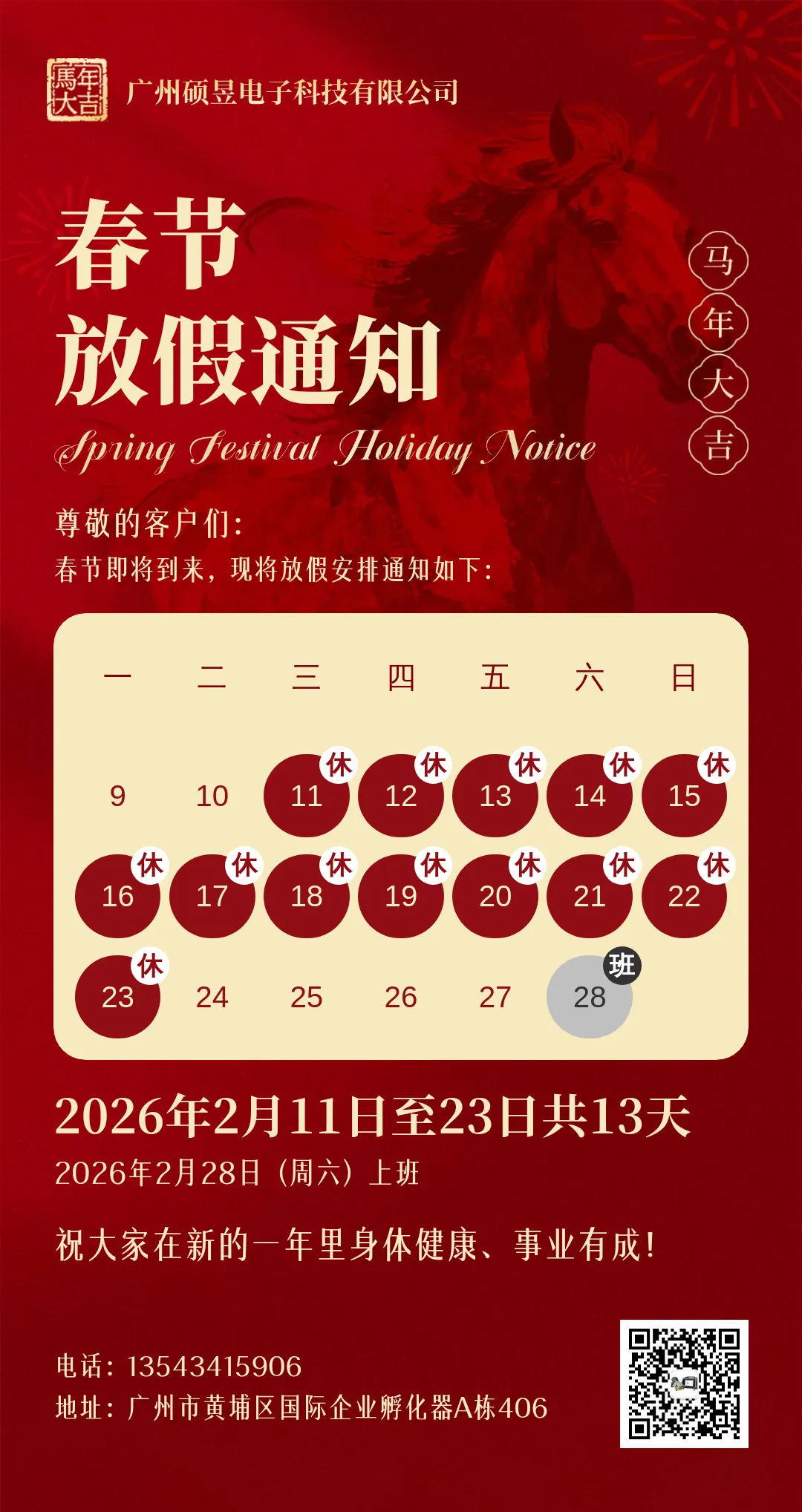 >广州硕昱电子科技有限公司春节放假通知