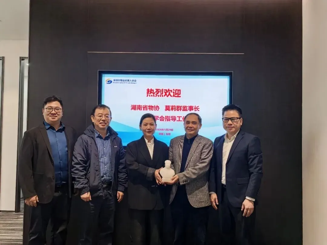 2026年1月29日,湖南省物业管理行业协会监事长莫莉群一行赴深圳市物业经理人学会进行参访交流,受到学会党支部书记姚成新、会员发展事务委员会副主任夏欣刚、秘书长李皓、副秘书长谢惠兴等负责人的热情接待。