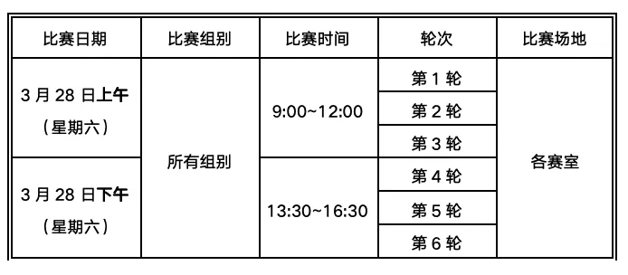 6级组:比赛选手均为无级别,且实际参赛人数不少于12名,轮次6轮。6 胜、5 胜定 3 级;4 胜、3 胜定 4 级;2 胜定 5 级