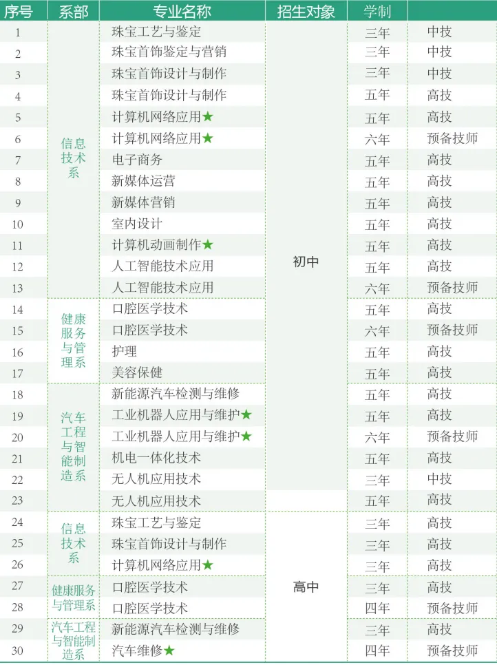 广州南华工贸技师学院是省示范技师学院,设南沙、番禺双校区,为世赛珠宝加工项目中国集训基地,珠宝专业国内引领。与周大福、广汽埃安等名企合作,3 + 证书、三二分段升学畅通,就业率超 98%。