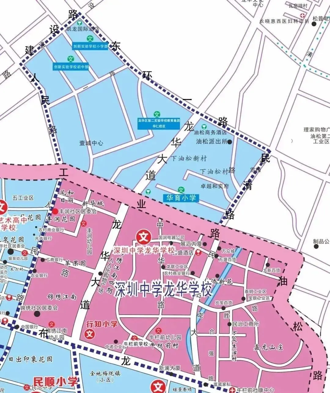 划分范围:民治街道(除单校划片学区外)和龙华街道东环一路以南、民清路以西、工业路以北、人民路以东、建设路以东(蓝色虚线框)范围。划分说明:综合统筹“就近入学、均衡教育资源、相对稳定”三个原则划定单片学区,同时通过多校联动学区调配学位资源。录取规则是按照单片学区1类、多校联动学区1类、单片学区2类、多校联动学区2类……学位类型顺序依次录取,同一学位类型按积分高低排序录取。△以上红色区域是单片区,蓝色虚线内区域是多校联动片区长按扫码进【中交国润华府】交流最新信息及获取购房渠道返惠!