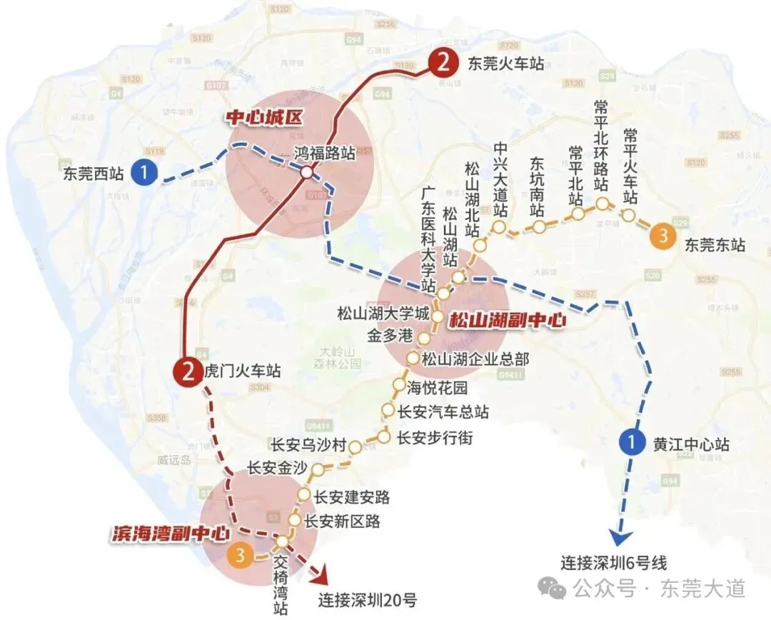 据了解,线路途径滨海湾新区、长安、大岭山、松山湖、东坑、常平6个镇街,拟设20座车站。